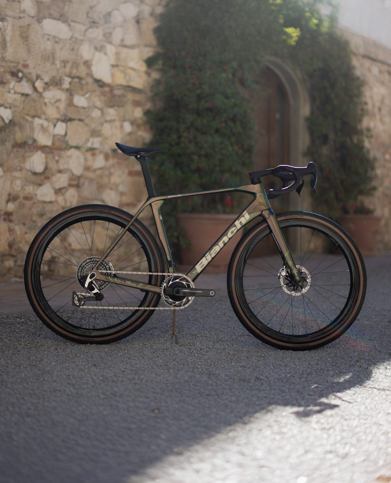 Topový závodní gravel, neuvěřitelně zmáknutý design, (za to mají u mě v Bianchi velký palec nahoru), jednoduché linie bez zbytečných nesmyslů, integrovaný kokpit s aero plochou, která je tak akorát do dlaně, možnost dát až 42mm gumy, karbonová 43mm vysoká kola s keramickými ložisky – ty pojedou samy a TO VŠE OSAZENO NOVÝM SRAMEM RED 1X13 doplněnou integrovaným wattmetrem pro precizní měření výkonu.