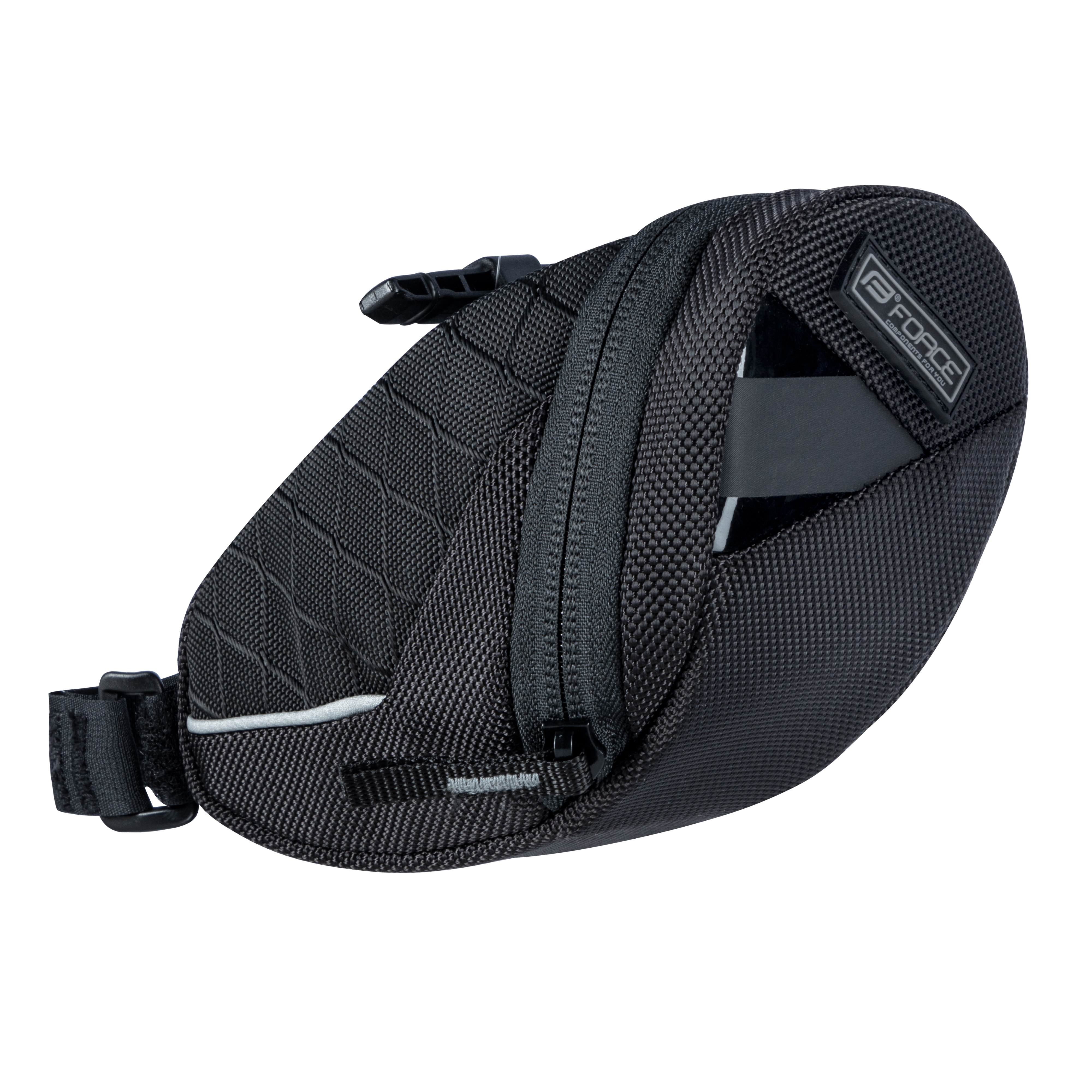 brašna pod sedlo FORCE LOCUS klick, černá.uchycení brašny systémem KLICK vnitřní kapsa-síťka, reflexní prvky délka: 15cm, šířka: 7,5cm, výška: 8,5cm objem: 0,45 l, hmotnost: 77 g materiál: polyester