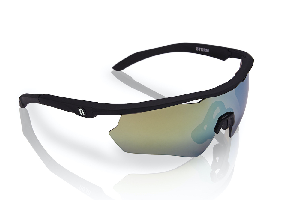 Model Storm je vhodný pro malé a střední tváře a pro ty, co milují otevřený rám. Vyznačuje se přítomností jediného sférického skla vyrobeného ze 100% polykarbonátu, které maximalizuje zorné pole pro ochranu před slunečním zářením, prachem a větrem. Je vybaven lehkým a ve spodní části otevřeným rámem, který poskytuje maximální pohodlí díky přítomnosti nosníku s gumovými koncovkami.