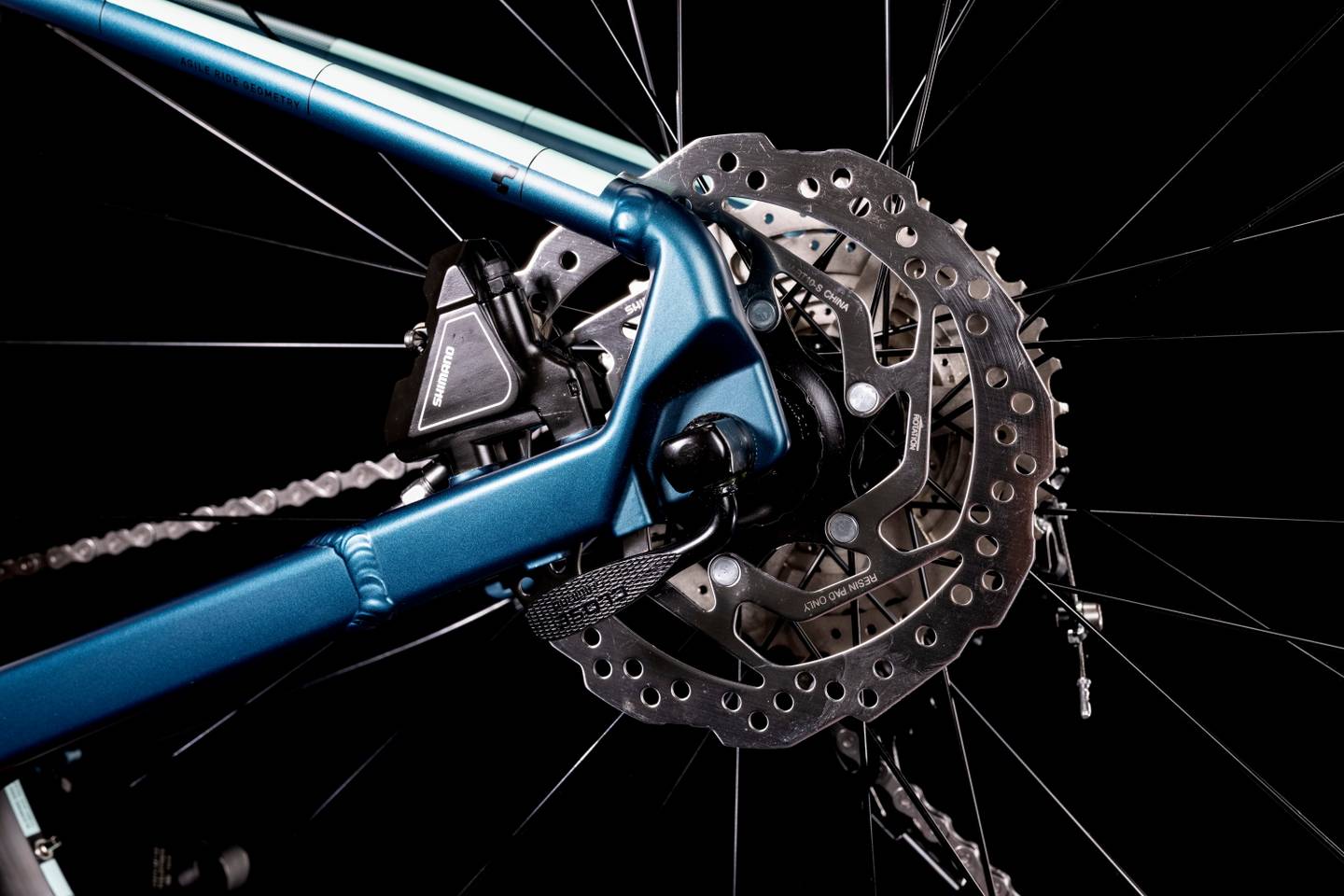 Nechybí závitové středové složení a vedení kabelů vnitřkem rámu pro dlouhou životnost a jednoduchou údržbu. V upevnění brzdového kotouče je elegantně integrováno upevnění na stojan. Pamatovali jsme také na přípravu pro montáž blatníků a nosiče ACID.