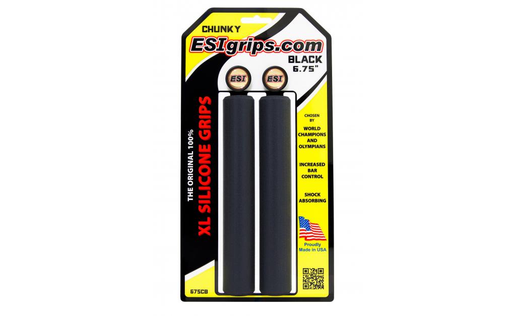 Špičkové 100% silikonové gripy ESIgrips Chunky ve verzi XL - prodloužené na 6,75" / 17 cm. ESIgrips vám padnou do ruky a velmi dobře tlumí otřesy. Zaručují stejný úchop za sucha i za mokra. Neklouže, ale nelepí. Snižuje znecitlivění rukou a únavu paží. Odolné vůči UV záření, nemění barvu ani tvar. Výborně sedí na řídítkách bez možnosti protáčení. Vynikající v náročných podmínkách i za jakéhokoliv počasí. Snadná údržba Délka: 17 cm Průměr: 32 mm Barva: černá