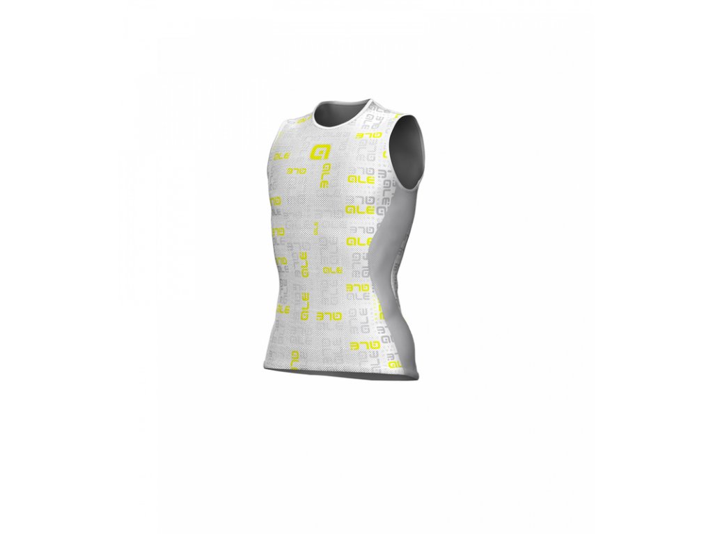 - Bílo-šedý potisk ALÉ se žlutými prvky.