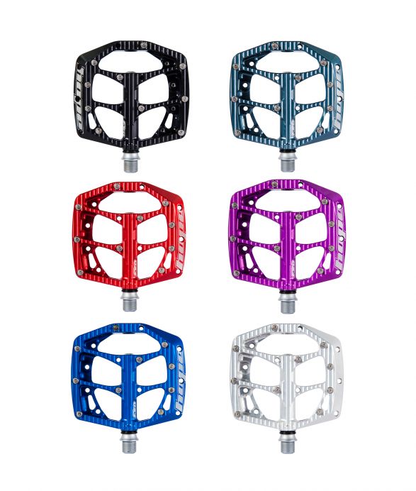 "F20" pedály vyrobeny z jednoho kusu (výroba jednoho kusu těla pedálu na CNC stroji trvá 28 minut!) kvalitní slitiny hliníku (2014 T6), 10 hrotů na každé straně, 3 kvalitní ložiska s perfektním utěsněním a váha 390g. Barva: černá, červená, modrá, fialová, grafitová a stříbrná.