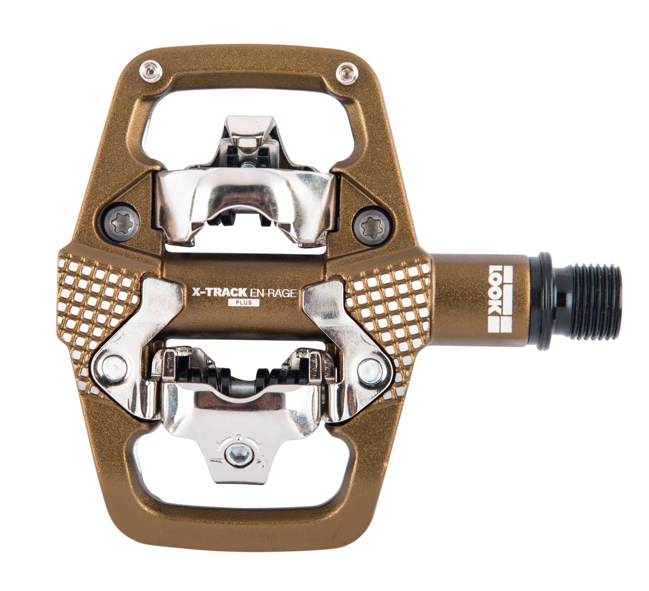 Pedál LOOK X-Track En-Rage Plus má kované hliníkové tělo, které zajišťuje neuvěřitelnou pevnost, a je kompatibilní se systémem SPD. Má 67 mm širokou platformu a 664 mm2 kontaktní plochy. To zajišťuje lepší stabilitu a oporu, zejména při vysokých rychlostech. Čepy a žebrování těla pedálu zajišťují přilnavost za všech okolností. Konstrukce modelu byla navržena na základě robustní osy a ložiskového mechanismu. Ten je odolný vůči poškození vnějšími vlivy (kameny, kořeny, bláto atd.). Boční kontaktní opora vede nohu při hledání pedálu a poskytuje kontaktní bod, i když se bota ještě nezacvakla. Tato široká kontaktní plocha zabraňuje klouzání nohy po těle pedálu a nabízí konzistentní a jistou oporu. Model X-Track En-Rage Plus dokonale vyhovuje požadavkům enduro jezdců.