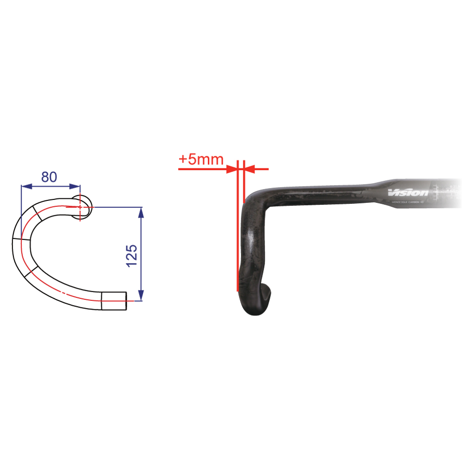 Ergo tvar oblouku řídítek s lepším dosahem na brzdové páky
