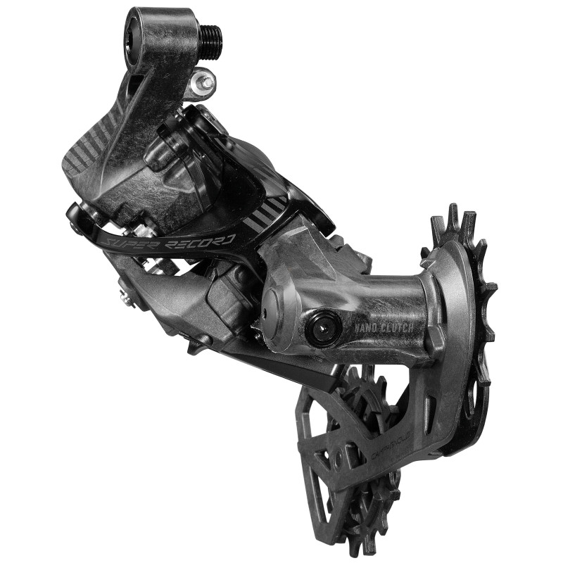 Přehazovačka Super Record 13, vyvinuta z nové sady Super Record 13 Tento zadní měnič s technologií převodovky (NANO CLUTCH) zdědil všechny vlastnosti, které činily tradiční model jedinečným: plynulé, rychlé a okamžité řazení i pod zátěží díky optimalizované dráze po celé řadě pastorků.