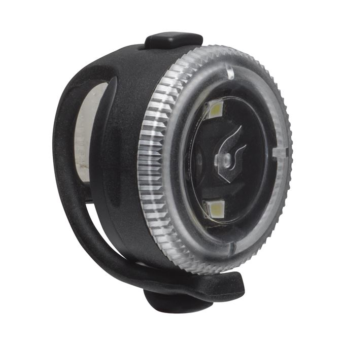 Malé dvoudiodové světlo, které se zapíná jednoduchým „kliknutím“ na krycí sklo. Disponuje svítivostí 20 Lumenů a je viditelné i z boku, abyste byli nepřehlédnutelní i pro auta přijíždějící ze strany. Díky silikonovému upínacímu pásku světlo přiděláte na kolo bez nářadí a během vteřiny. Voděodolnost dle standardu IP-65. 70 hodin svícení, 130 hodin blikání, 2 baterie CR2032.