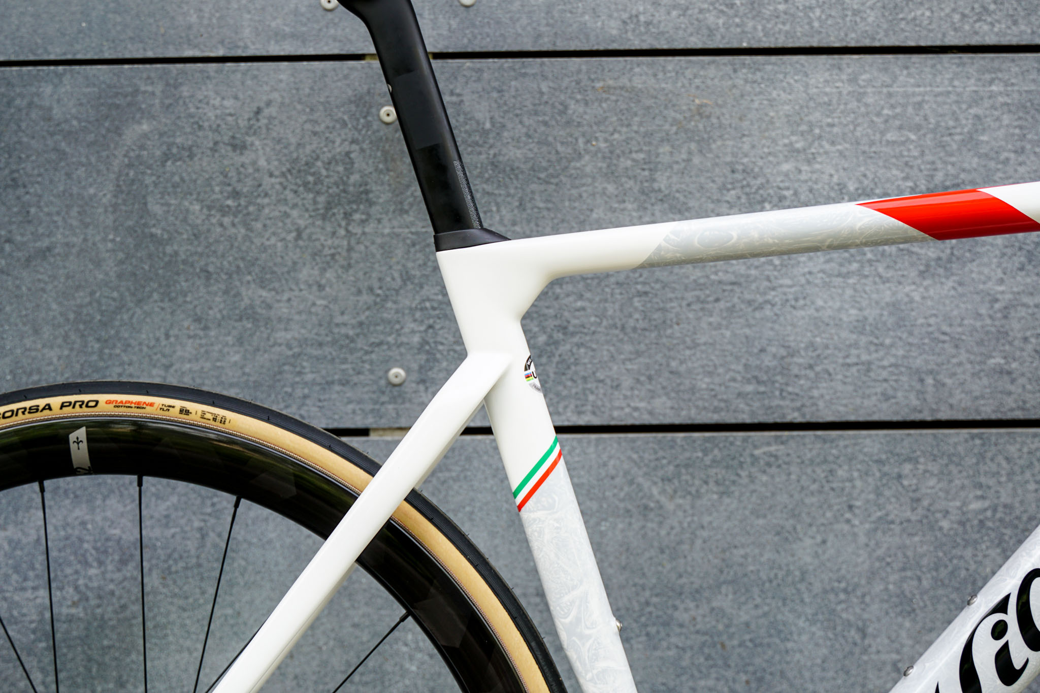 Sestavené kolo se špičkovými komponenty váží 6,8 kg.