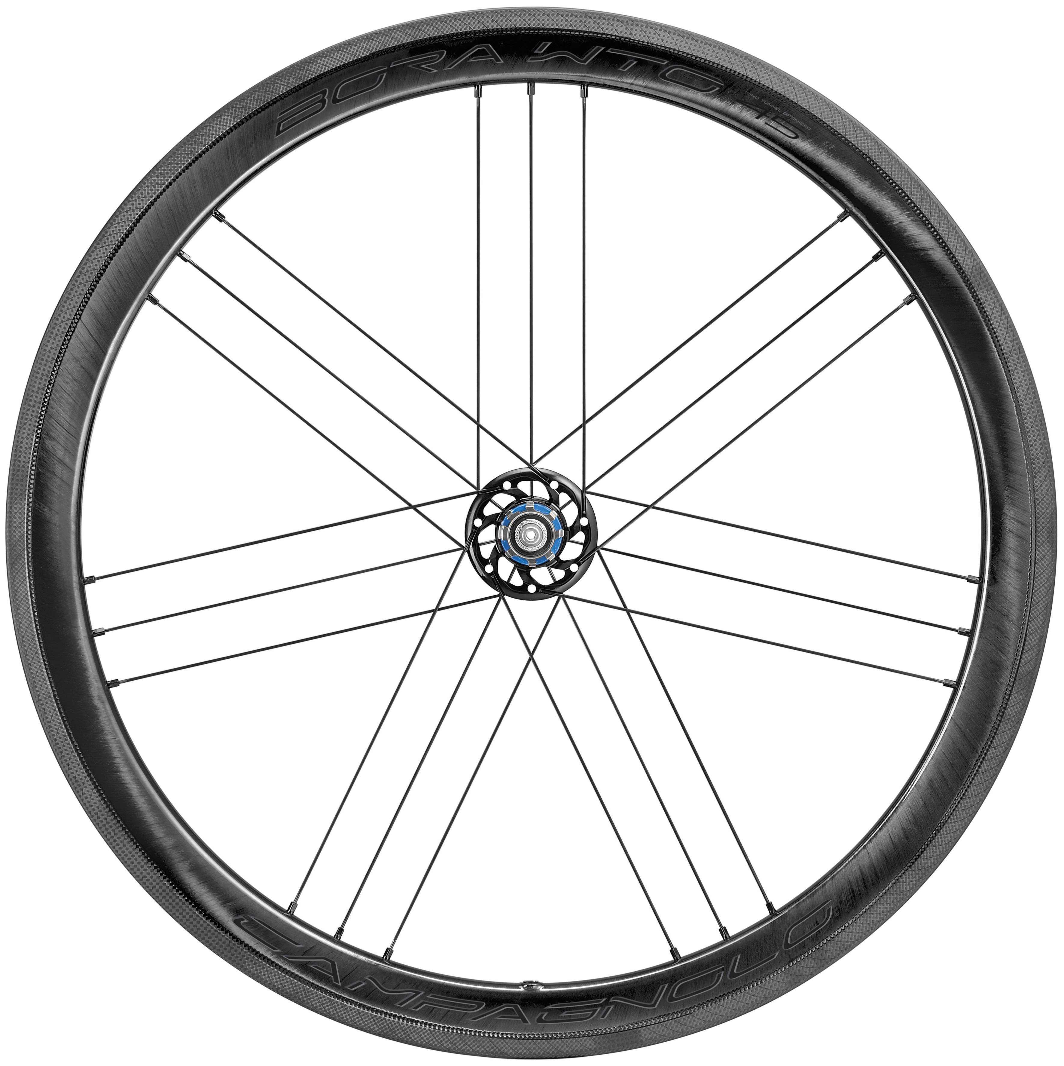 BORA WTO 45 2WF – zapletená kola se skvělými aerodynamickými vlastnostmi (pojmenování kol WTO je akronym slov WIND TUNEL OPTIMIZED, který vypovídá o prostředí, ve kterém inženýři firmy Campagnolo tato kola vyvíjeli). Další akronym 2WF (2 WAY FIT) poukazuje na to, že kola lze použít jak se standardními, tak i bezdušovými plášti a to bez jakékoliv další úpravy.