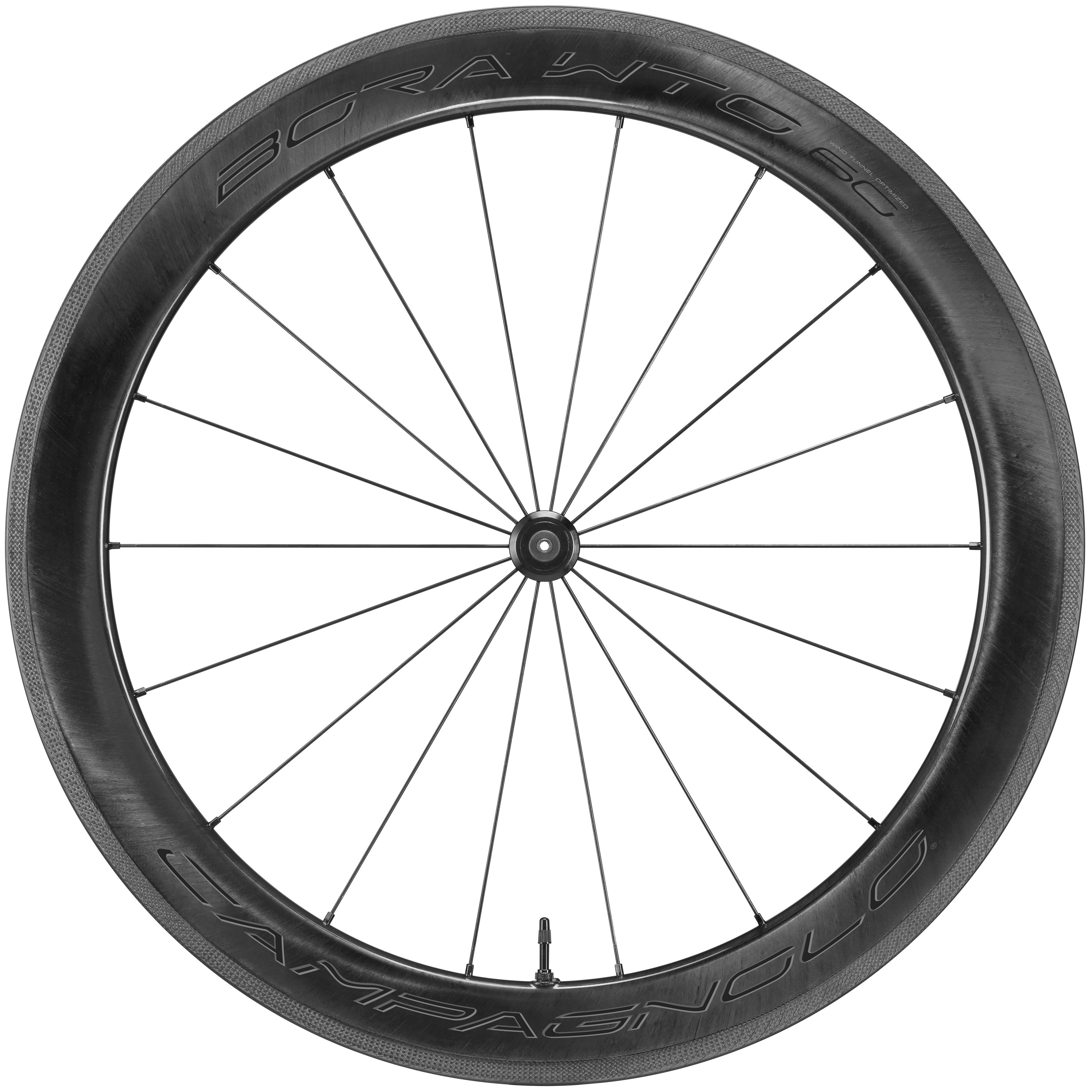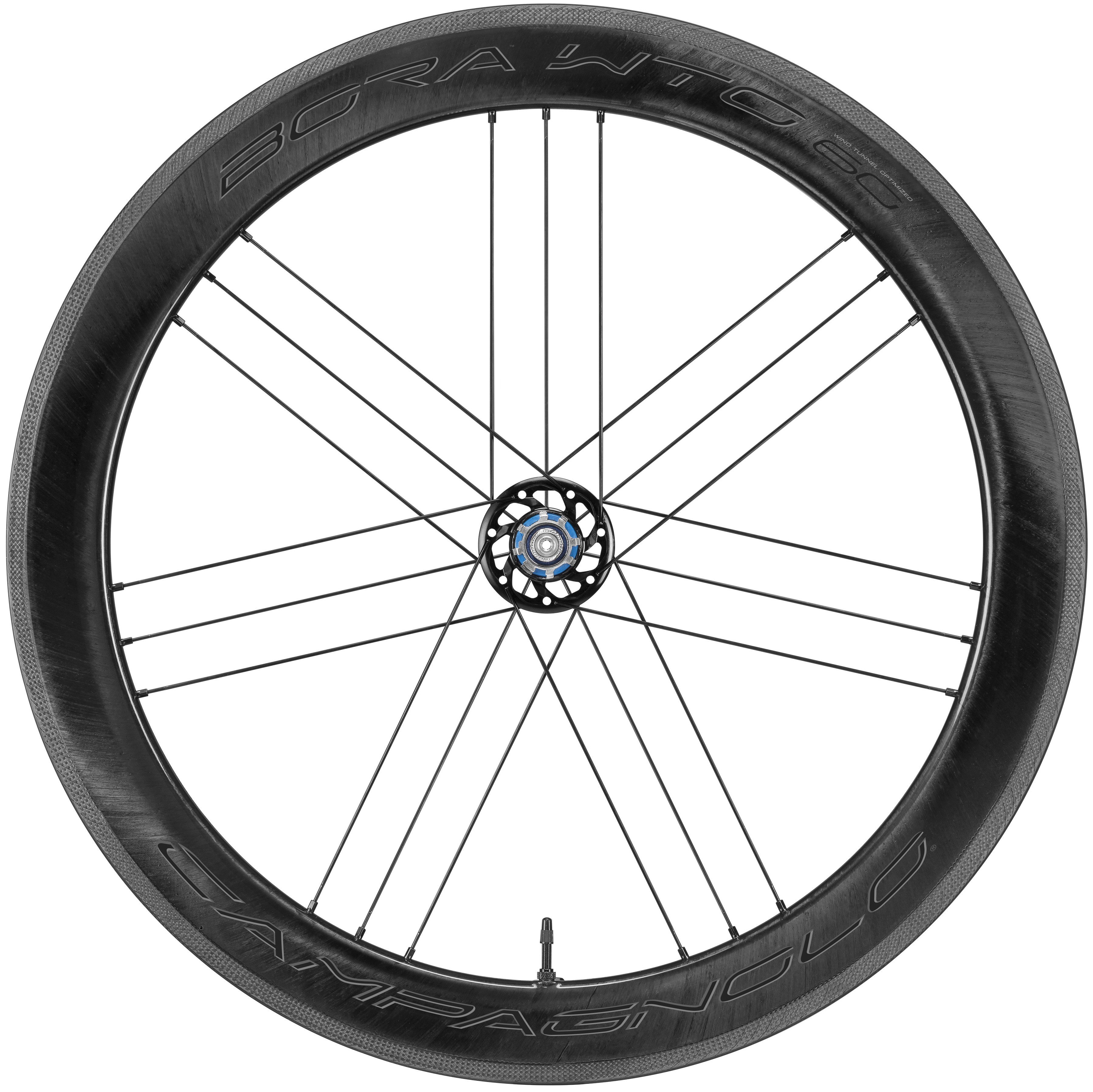 BORA WTO 60 2WF – zapletená kola se skvělými aerodynamickými vlastnostmi (pojmenování kol WTO je akronym slov WIND TUNEL OPTIMIZED, který vypovídá o prostředí, ve kterém inženýři firmy Campagnolo tato kola vyvíjeli). Další akronym 2WF (2 WAY FIT) poukazuje na to, že kola lze použít jak se standardními, tak i bezdušovými plášti a to bez jakékoliv další úpravy.